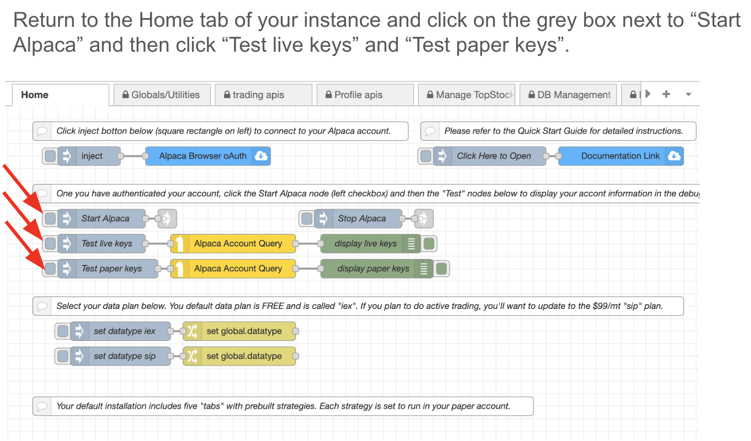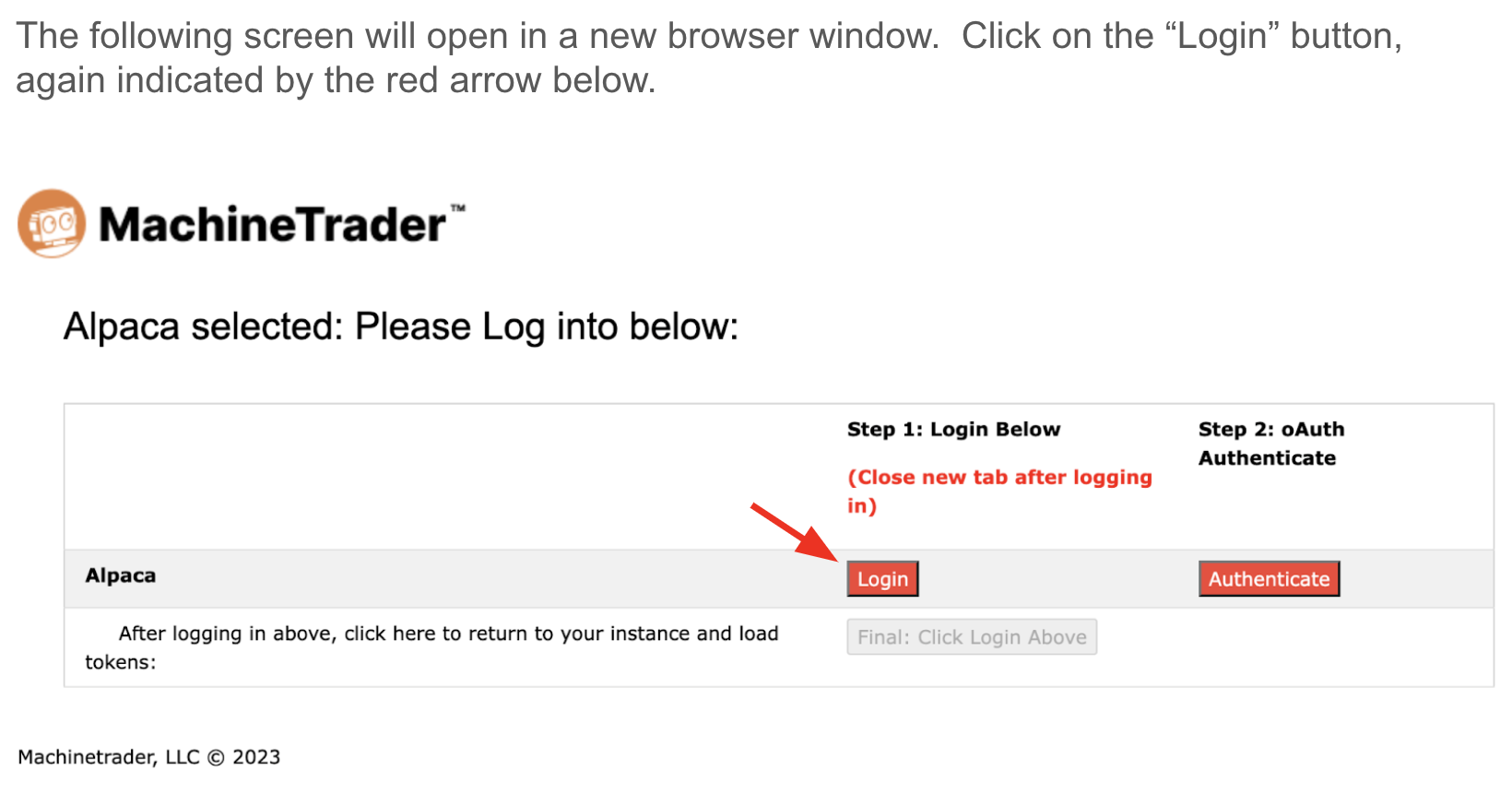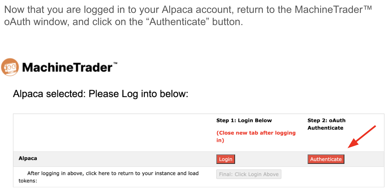 Once you sign up for a MachineTrader trading account, you will receive access to your own "instance" on AWS Cloud. After you log in to your account, navigate to the "Home Page" in order to authorize your Alpaca account.